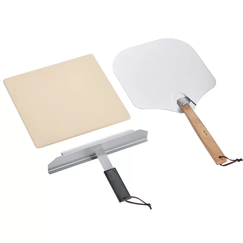 • В комплект входит: камень для пиццы из кордиерита, передняя пластина из нержавеющей стали и алюминиевая лопатка для пиццы с деревянной ручкой