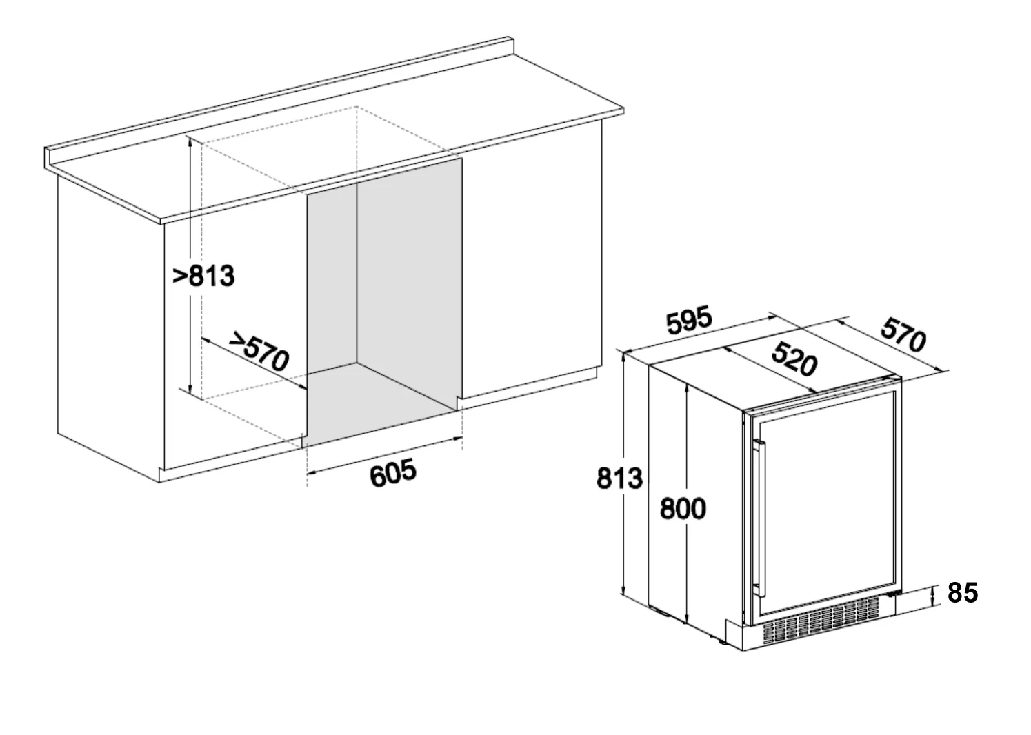 • Две температурные зоны физически разделены посередине винного шкафа, причем холодная зона находится вверху, а более теплая — внизу.  Мы рекомендуем хранить белое вино и игристое при температуре 8°C, а красное вино — при 14°C.