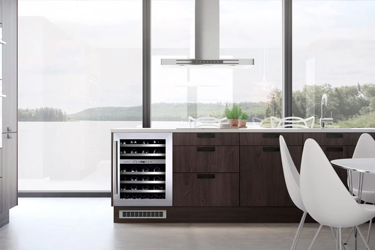 • Охлаждение в данной модели осуществляется с помощью тихого компрессора. Он бесшумный и опирается на специально разработанные амортизаторы, которые защищают вино от вредных вибраций.