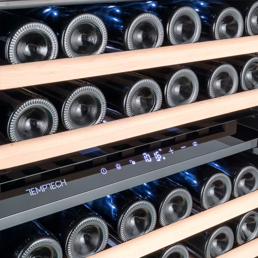 Винный шкаф Temptech OX60DRB-24 с двумя температурными зонами (5-20 ° C, 5-20 ° C) и вместимостью 46 бутылок может быть установлен под столешницу или установлен отдельно.