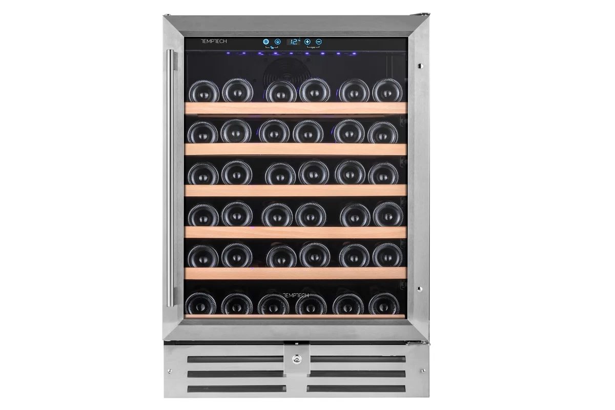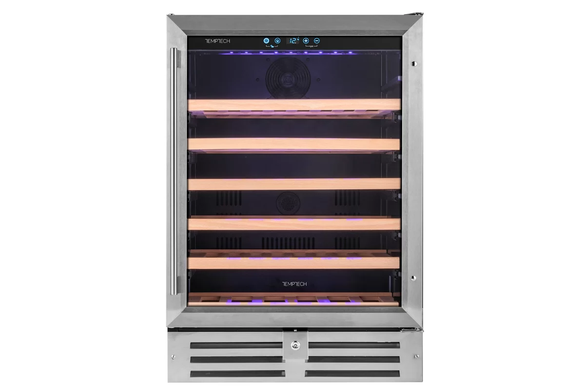 Винный шкаф оборудован вентиляторами, которые обеспечивают циркуляцию воздуха. Конденсат в винном шкафу используется повторно и, таким образом, поддерживает оптимальную влажность в винном шкафу, а фильтр с активированным углем обеспечивает свежий и чистый воздух в холодильнике для вина Temptech WPQ60SCS