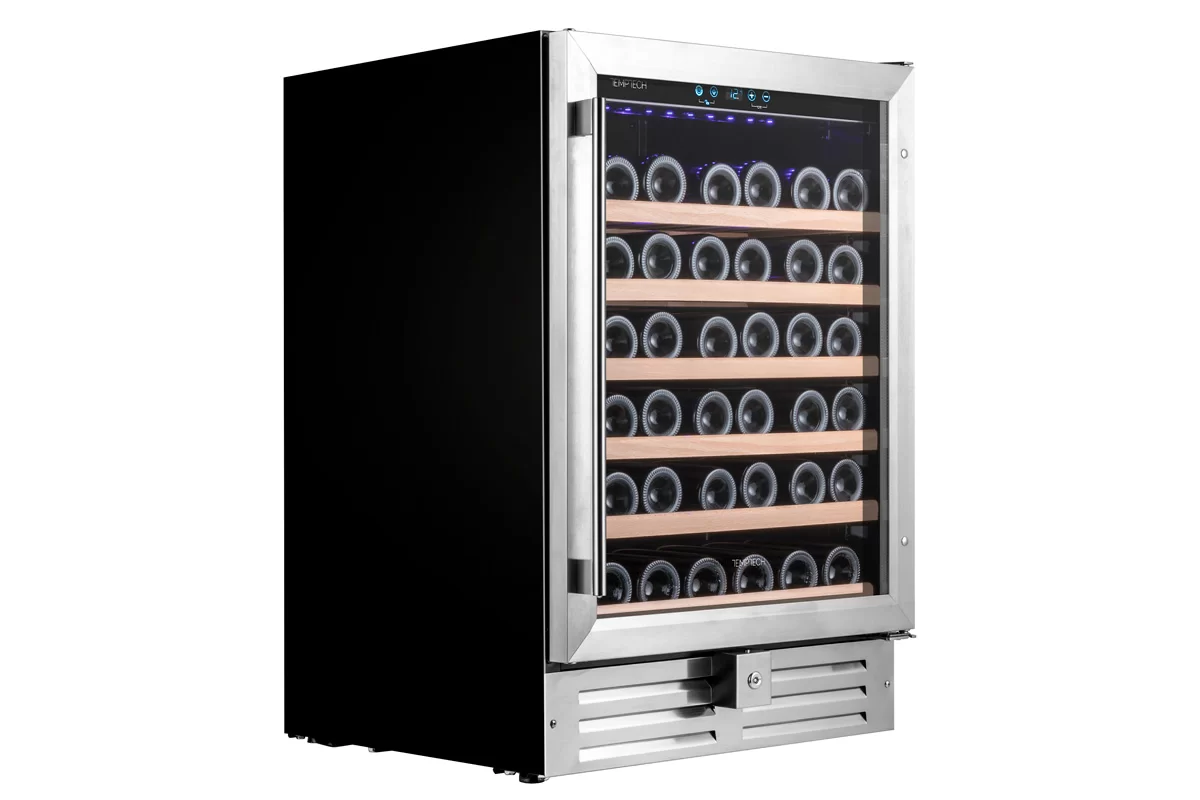 Винный шкаф серии Premium с фасадом из черного стекла в раме вместимостью 46 бутылок и одной температурной зоной (5-20° C).