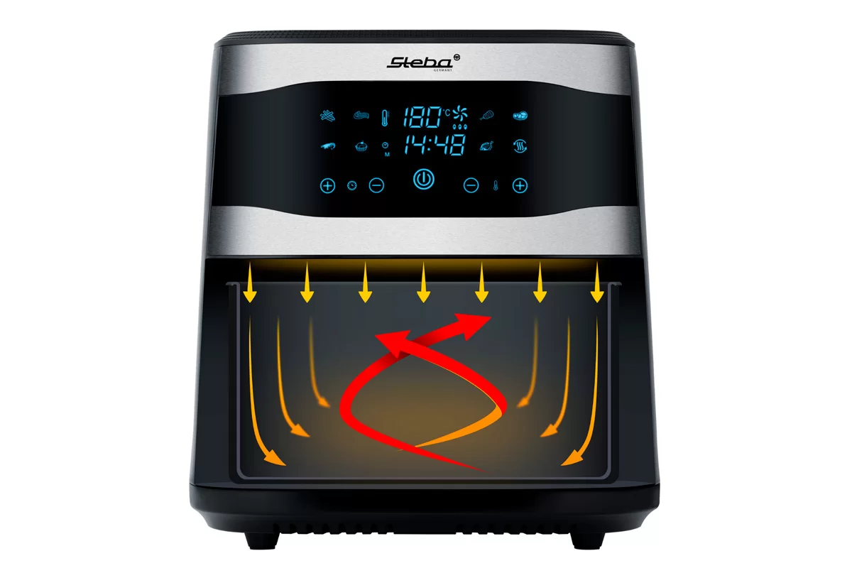 Аэрофритюрница Steba HF 8000 FAMILY позволяет создавать хрустящую корочку и манящие ароматы, используя всего несколько капель масла. Циркуляция горячего воздуха, разогретого до высокой температуры (80-200°C), позволяет равномерно приготовить блюдо. Оно не пересушится и сохранит все полезные микроэлементы.