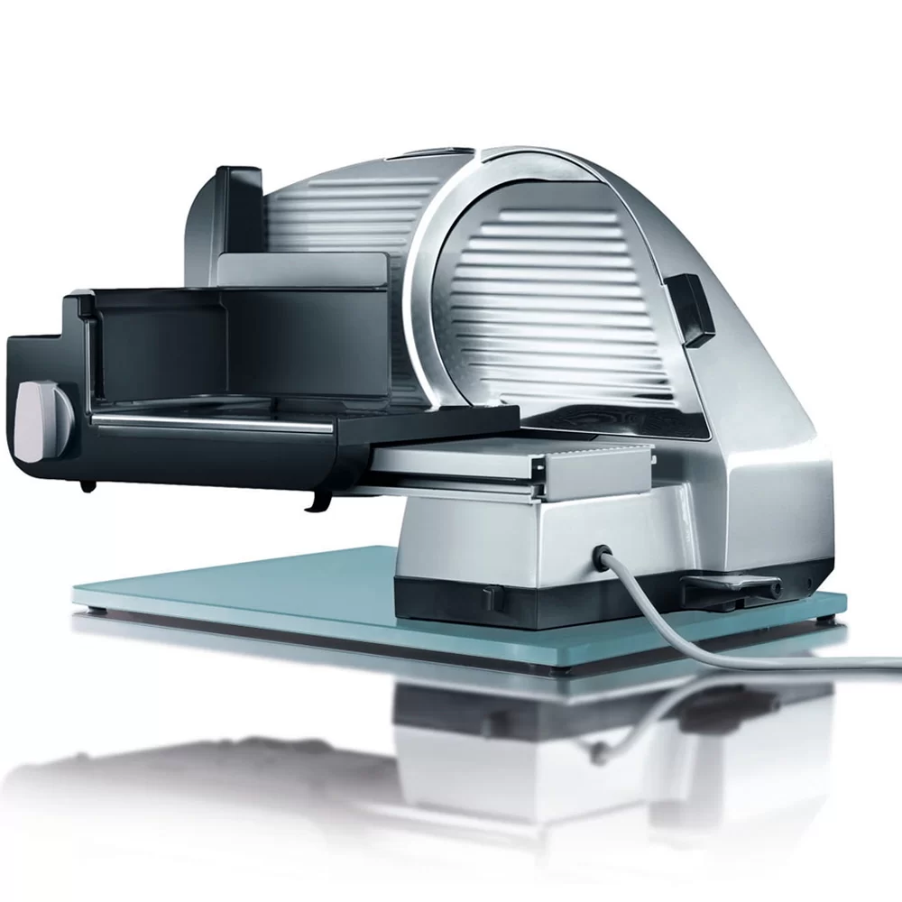Высокопроизводительный и очень тихий конденсаторный двигатель мощностью 170 Вт гарантирует наилучшие результаты нарезки благодаря постоянной скорости вращения.