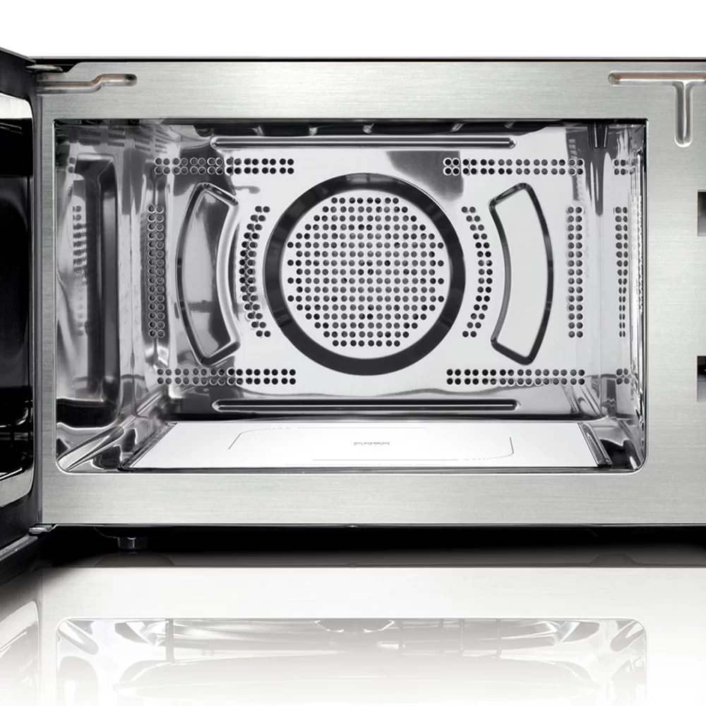 Ровное дно камеры очень легко моется и дает больше места для прямоугольных форм при готовке. Отражатель микроволн равномерно распределяет микроволны, блюдо отлично готовится со всех сторон.
