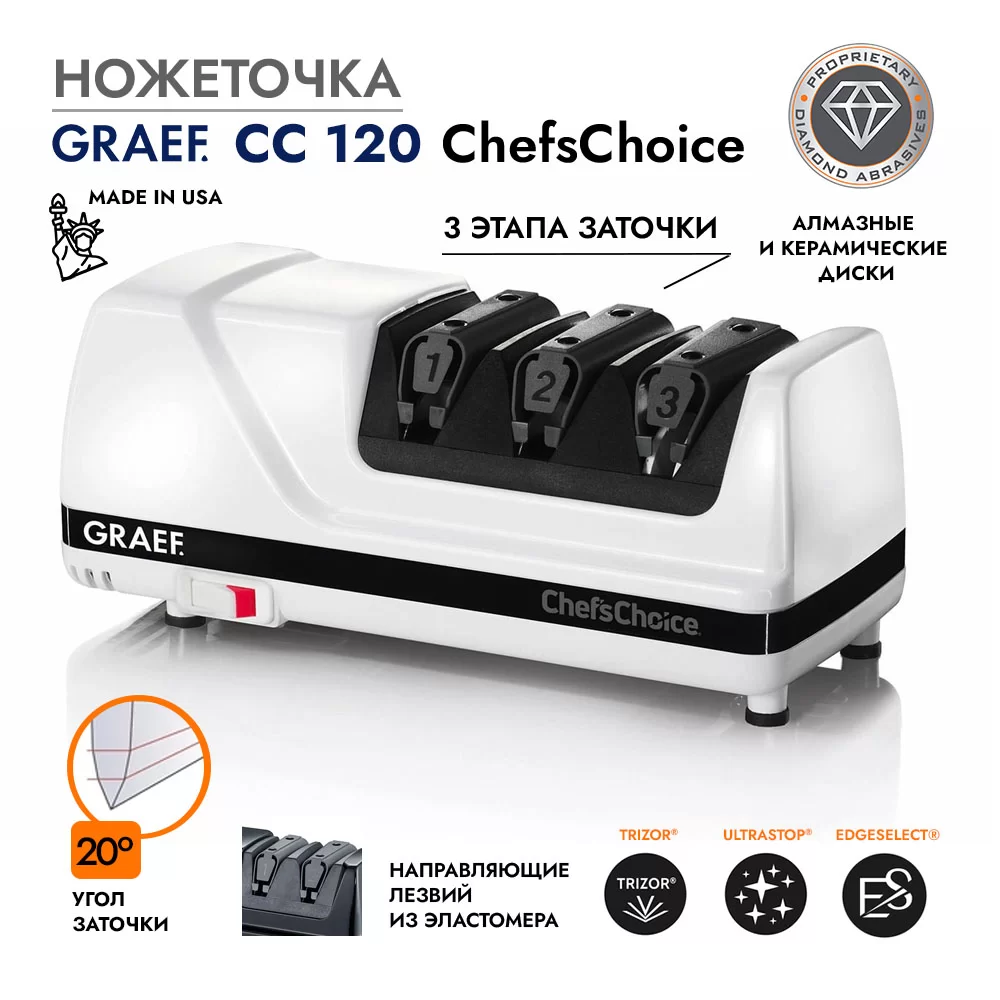 Безопасность — ножи могут быть опасными, особенно если они не заточены правильно. Ножеточка GRAEF помогает предотвратить травмы и сохранить безопасность при использовании ножей.