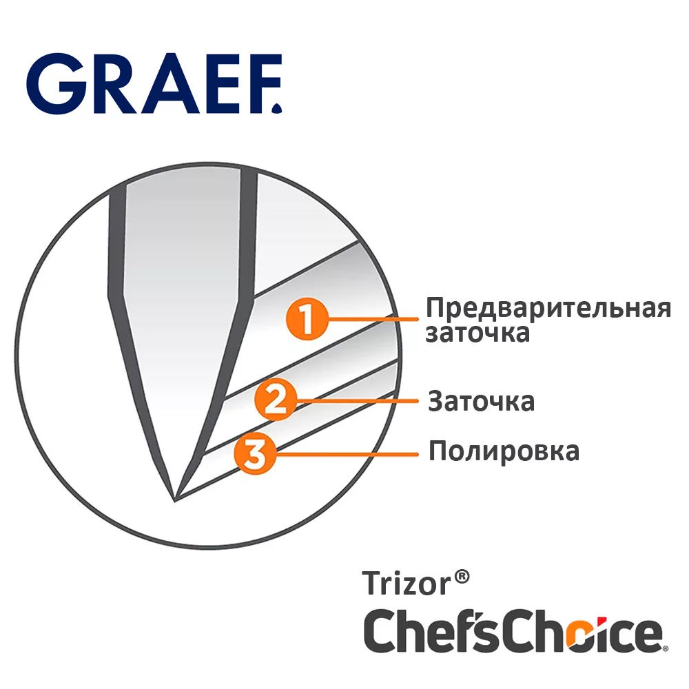 Экономия времени — ножеточка GRAEF экономит время, которое вы тратите на заточку ножей вручную. Это особенно полезно для тех, кто готовит много и часто, или для профессиональных поваров.