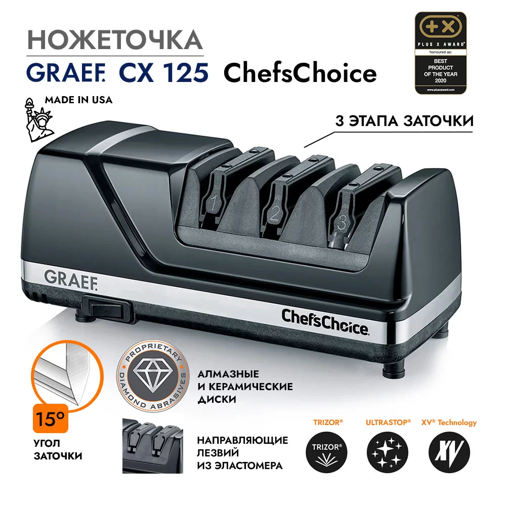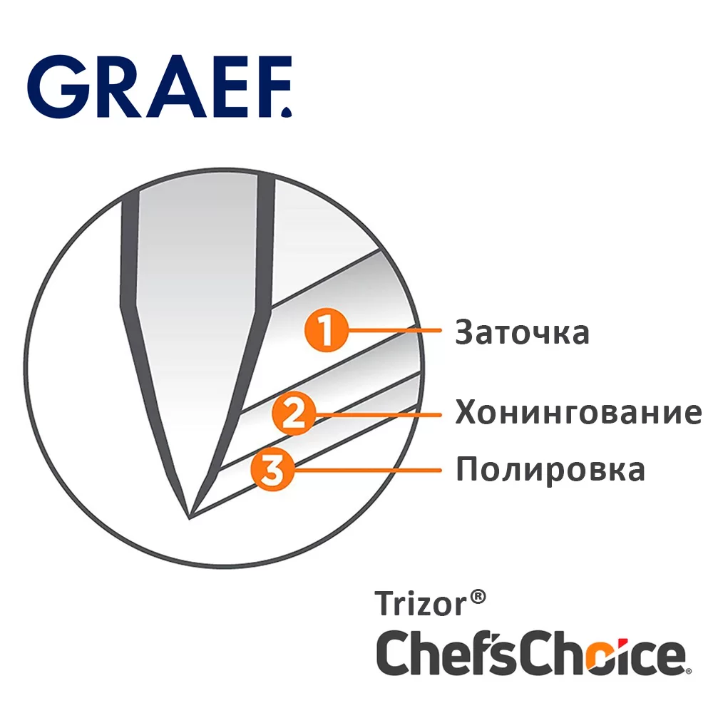 Экономия времени — ножеточка GRAEF экономит время, которое вы тратите на заточку ножей вручную. Это особенно полезно для тех, кто готовит много и часто, или для профессиональных поваров.